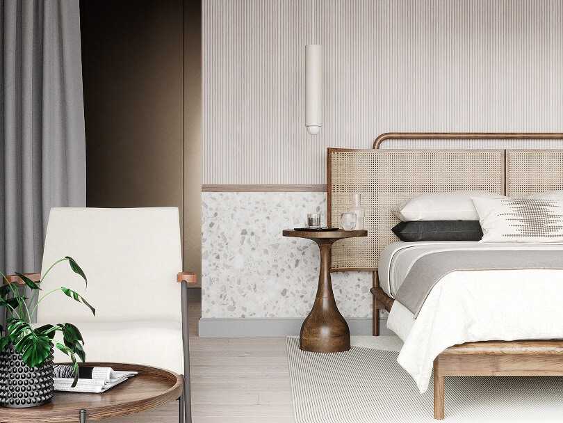 Это интересное решение для стены за изголовьем кровати в спальне.