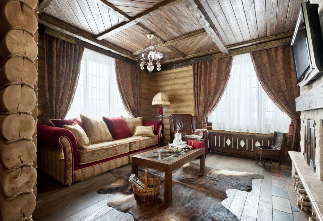 Разнообразные потолки в деревянном доме на фото чаще встречаются в дизайне помещений, оформленных в следующих стилях: