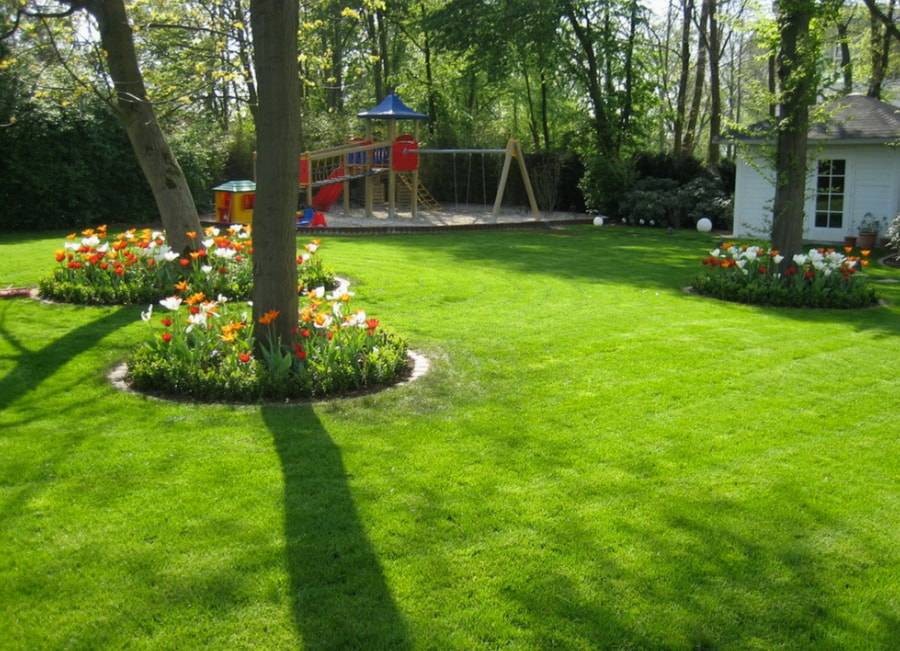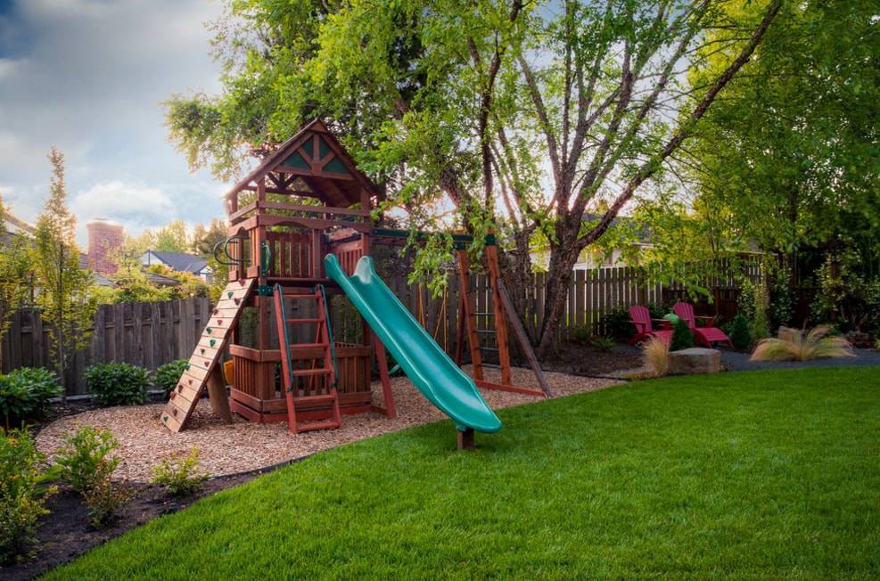 Для небольших детей идеальное покрытие на детской площадке — газонная трава