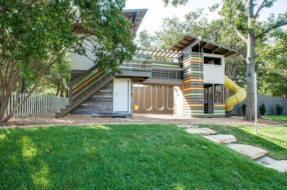 Шикарная большая детская площадка, которая больше подойдет для городского парка, но никто не запрещает сделать такую же у себя на заднем дворе.
