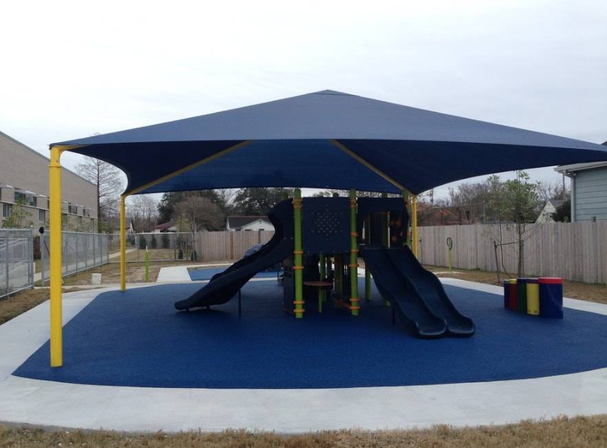 навес над площадкой будет защищать играющих детей от прямых солнечных лучей, а саму территорию от загрязнения.