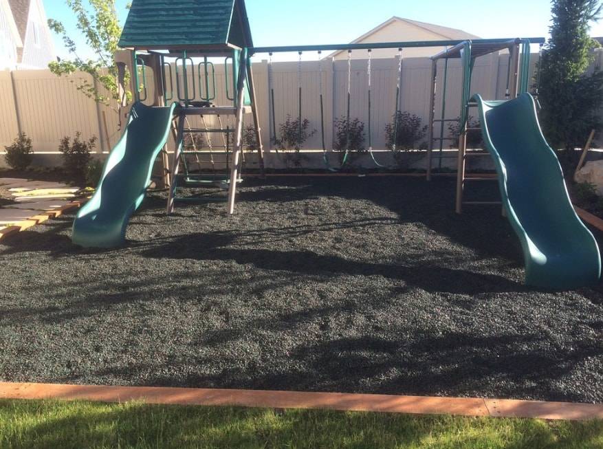 Еще вариант- насыпать дробленой коры. Другой вопрос, что взять кору эту есть возможность не у всех. Но если есть — попробуйте. Покрытие мягкое и не травмоопасное. Только ее необходимо хорошо измельчить и удалить щепки, которые там могут оказаться.