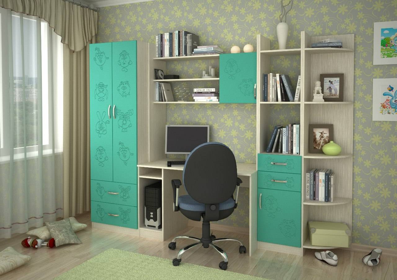 Преимущества компьютерных вариантов детских стенок со столом и шкафом