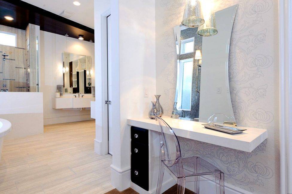Если спальня выполнена в классическом стиле, то наилучшим дополнением будет столик, украшенный изысканной резьбой по дереву. Само зеркало в интерьере спальни в классическом стиле должно иметь круглую или овальную форму, быть обрамлено роскошной хромированной или серебряной рамкой.