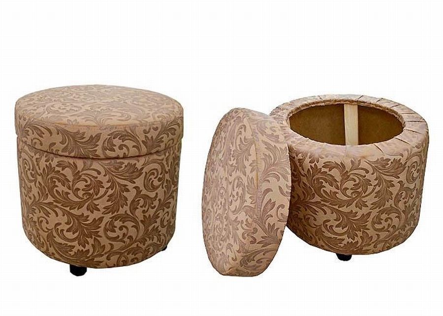 Крышки пуфика также бывают разнообразными: просто съёмные и на шарнирах.