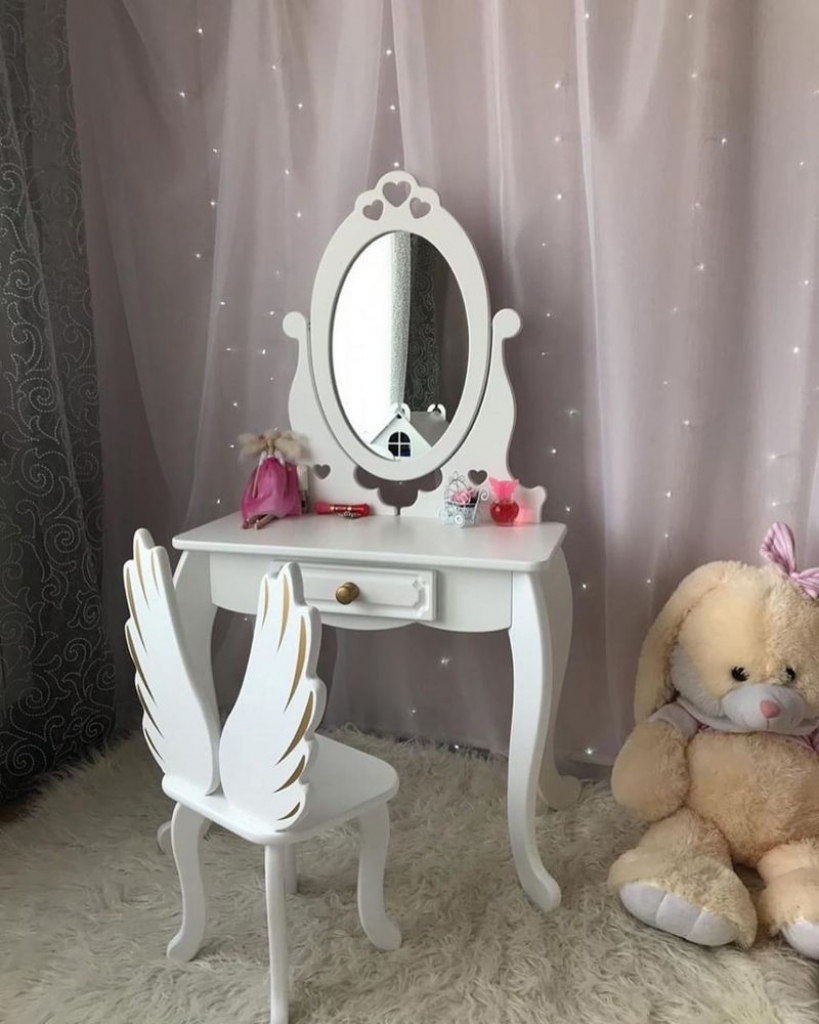 Поскольку многие девочки с раннего возраста очень любят красоваться перед зеркалом, наличие красивого трюмо в их комнате просто обязательно: