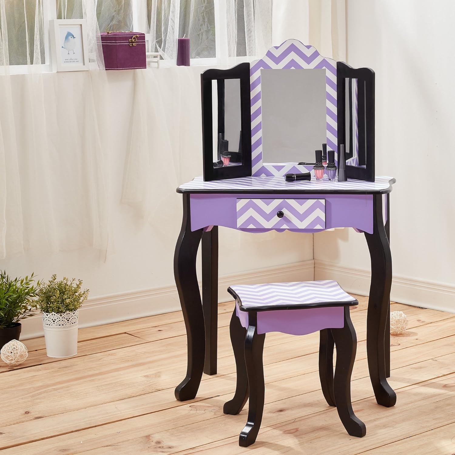 Обязательно позаботьтесь о том, на чем девочка будет сидеть за туалетным столиком. Оптимально выбрать модель, к которой производителем предусмотрен выполненный в едином стиле стульчик или скамеечка.