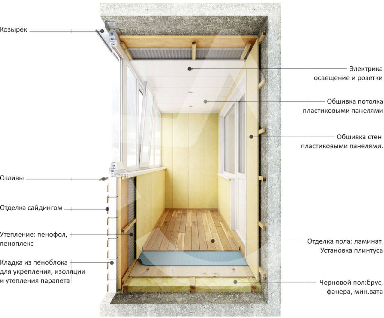 Отделка балкона