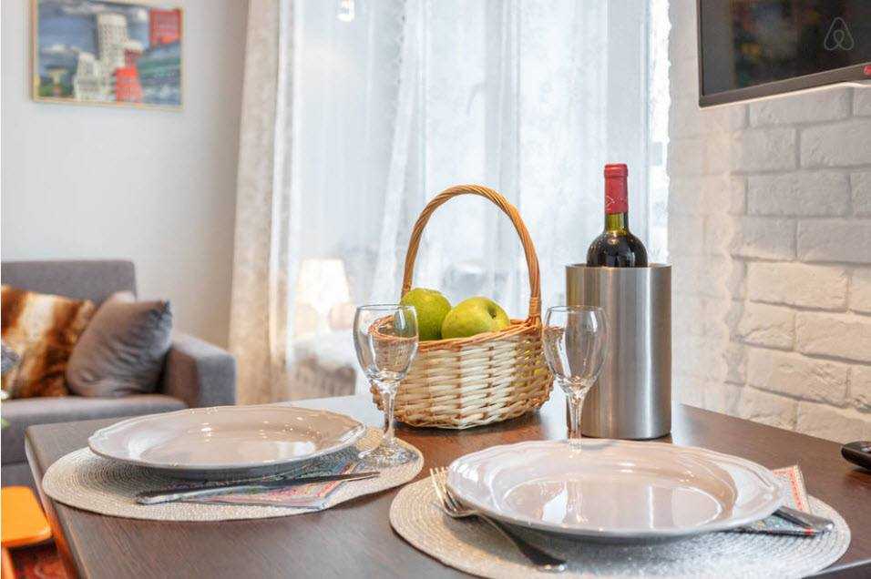 - Обеденная зона на подоконнике. Если семья небольшая, можно сократить количество мебели, сделав из подоконника обеденную зону. Получится что-то вроде кафе, но зато уютно. Вид из окна добавит атмосферы спокойствия.