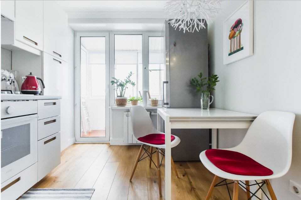 В целом, для соединения балконного пространства с кухней, можно либо оставить перегородку, либо демонтировать ее. Убирая дверь и стену, вы сделаете комнату намного больше. Если у вас кухня размером в 6 кв. м, то за счет расширения ее таким путем, вы получите помещение в 9 кв. м. А кухонька в 10 кв. м превратиться едва ли не в студию размером в 12 кв. м.