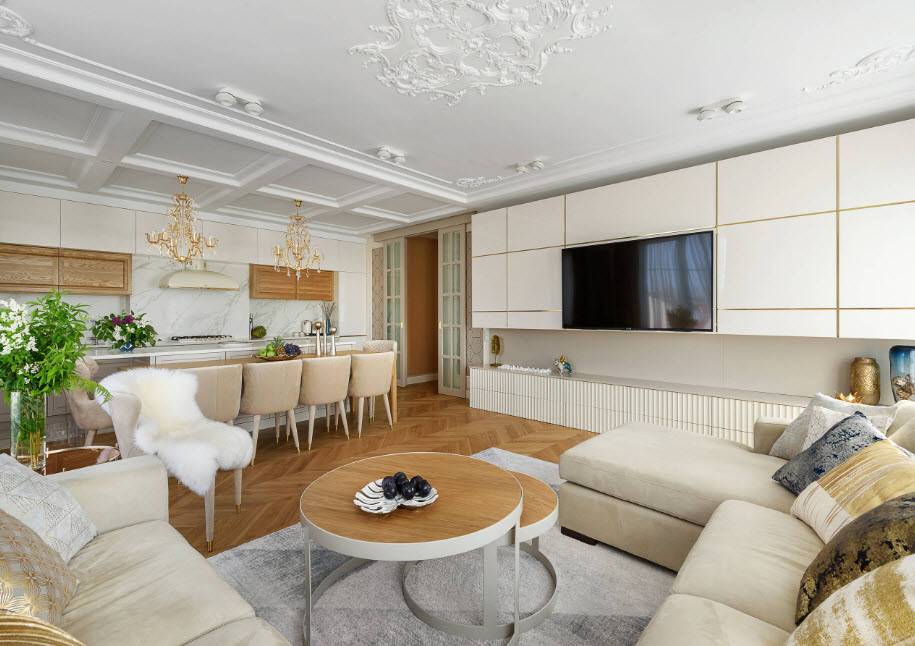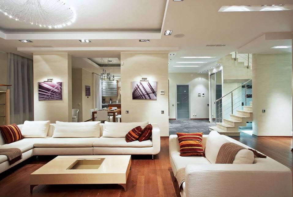 Гостиная должна быть большой, потому что лучше отдыхать в открытом пространстве.