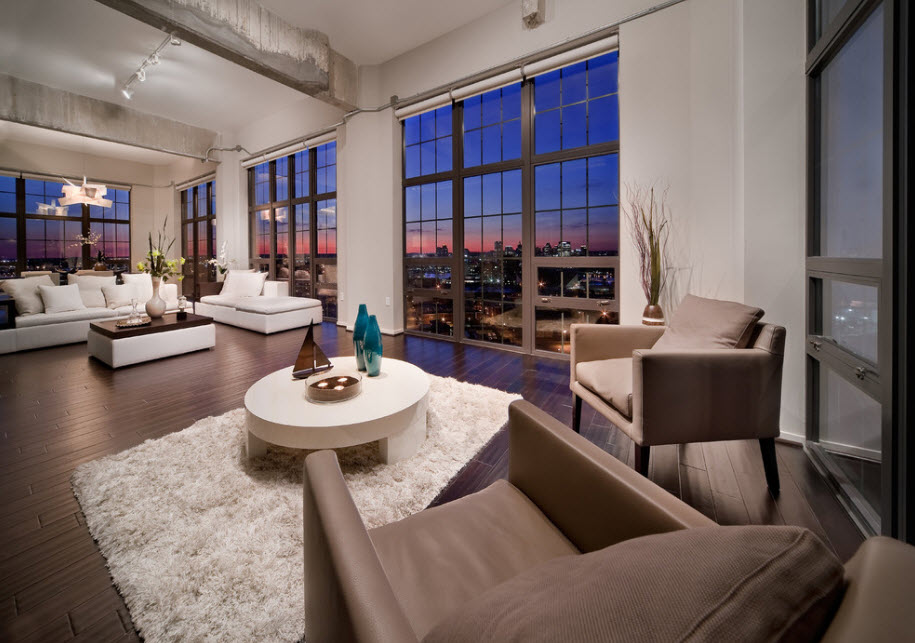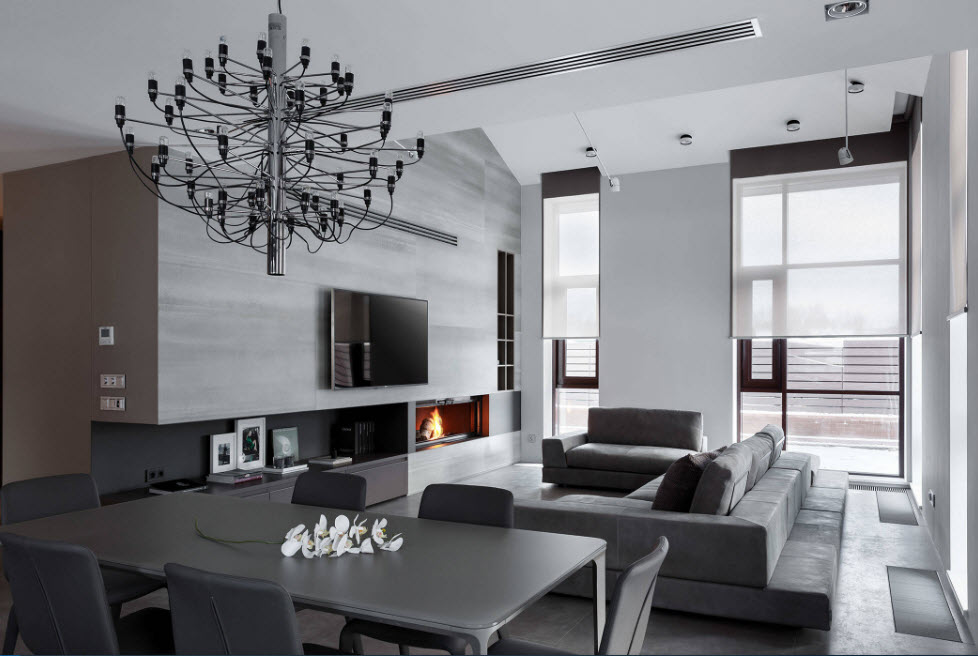 Главное правило дизайнеров при оформлении больших пространств – перенести внимание со стен комнаты в ее центр. Вариантов это сделать масса