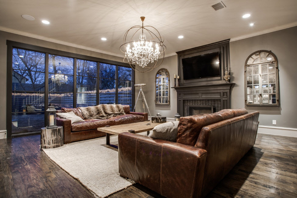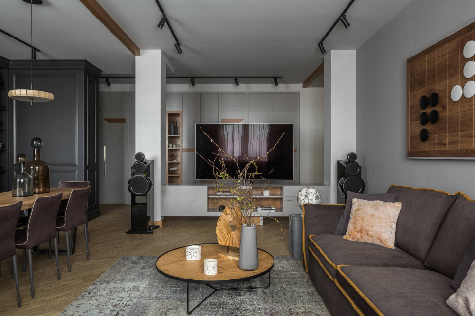 В последнее время популярно использование натуральных материалов и экологически чистых интерьеров, поэтому обратите особое внимание на древесину и натуральный камень. Деревянные панели создают уютную и комфортную обстановку, при этом интерьер большой гостиной будет не только натуральным, но и достаточно живым, интересным и привлекательным