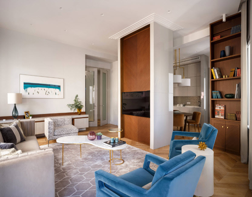 грамотное использование периметра помещения и создание просторного центра комнаты