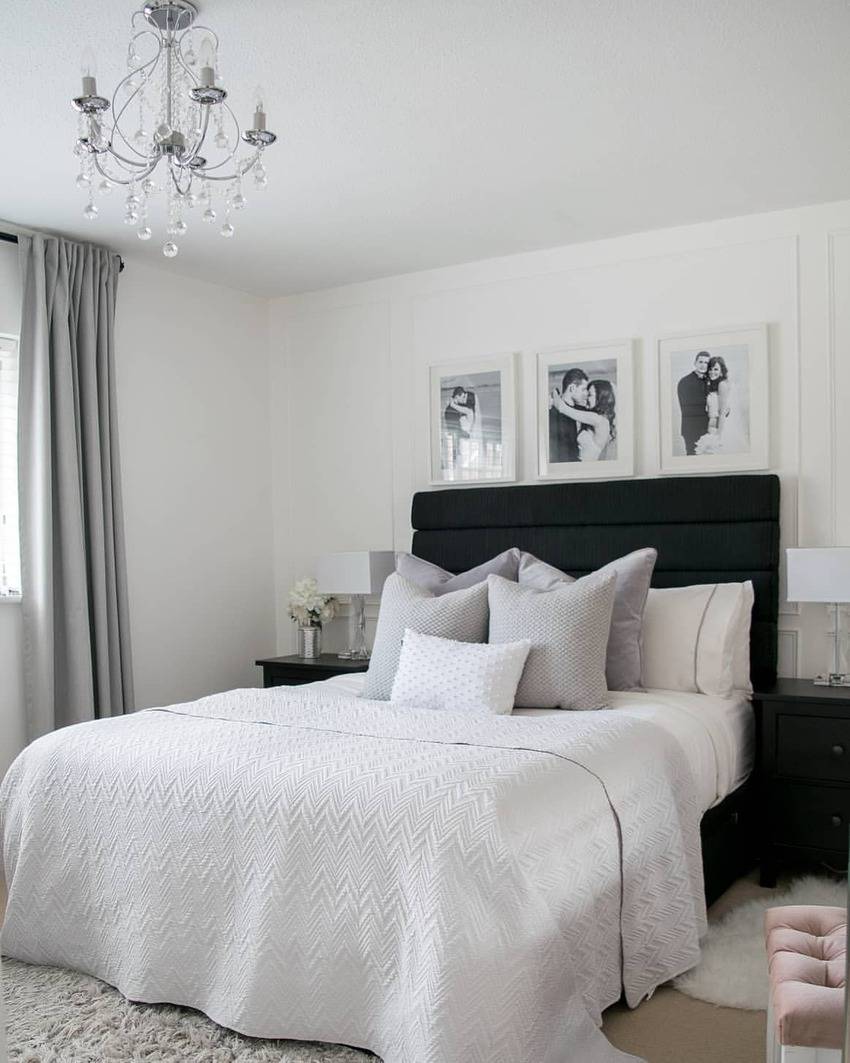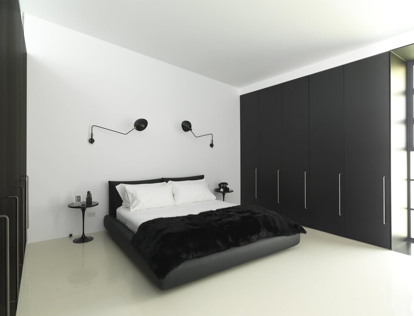 Светлые и темные тона играют важную роль в визуальном расширении и сужении пространства. Черный подойдет только для больших по площади спален.