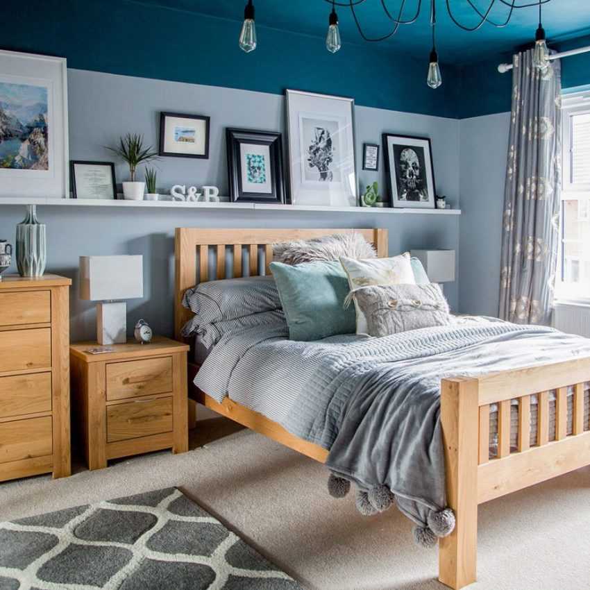 Как будет выглядеть интерьер голубой спальни – это во многом зависит от сочетаний. Белые стены, серо-синий пол и немного коричневого – это хороший набор цветов для спокойной спальни.