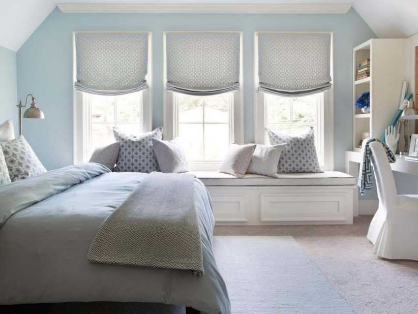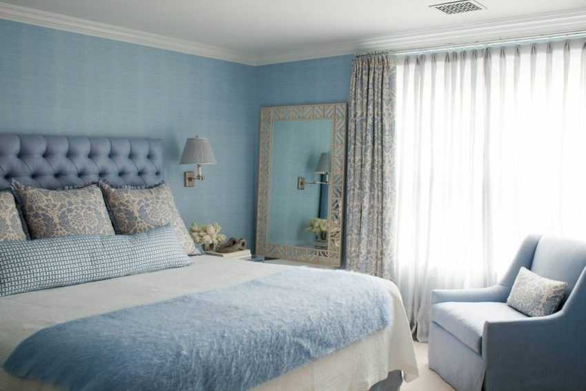 В планировке спальни можно использовать голубой и его оттенки в декоре стен, в качестве декоративной темы на постельных принадлежностях или покрывале, а также обустроить всю спальню в синем цвете.