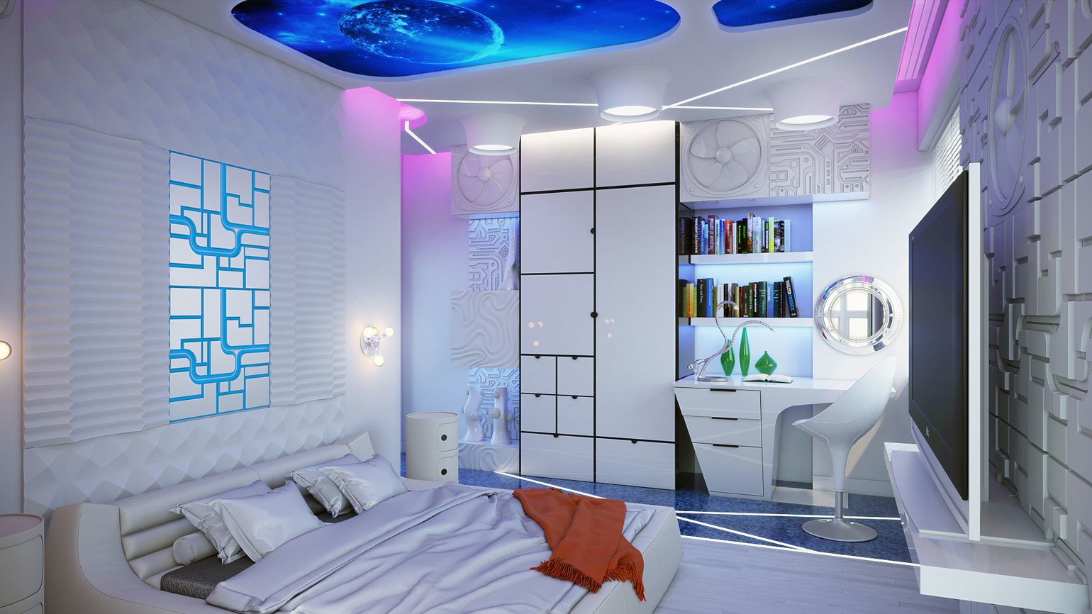 Особенности. Название стиля говорит само за себя ― он отражает представления человека о будущем и инновациях. Функциональный и технологичный, футуристический дизайн в первую очередь вдохновлён мечтами об освоении космоса.