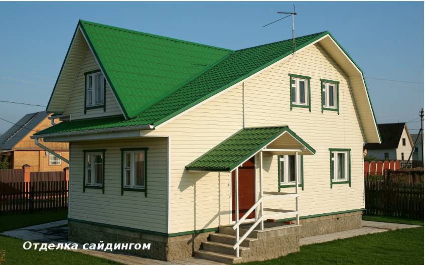 Это очень популярный материал для отделки домов из легкого бетона, дерева, кирпича. Материал может быть виниловым и металлическим. Если стены чистые и ровные, сайдинг крепится прямо на них. Если же геометрия нарушена, необходимо предварительно сделать обрешетку.