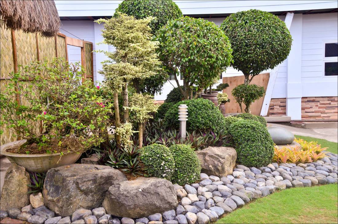 После того, как пространство было разграничено, а дорожки и функциональные места обозначены, следует заняться озеленением. Во время этого процесса нужно выбрать правильное расположение растений, при этом следует учитывать их размеры и время цветения. Изначально нужно размещать деревья, крупные кустарники.