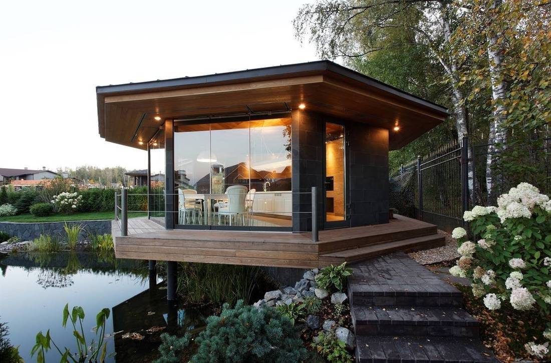 - Небольшой пруд. Заселите его рыбками, украсьте камнями и кувшинками, и это место станет представлять огромный интерес для гостей, а также станет любимым местом игр для младшего поколения.