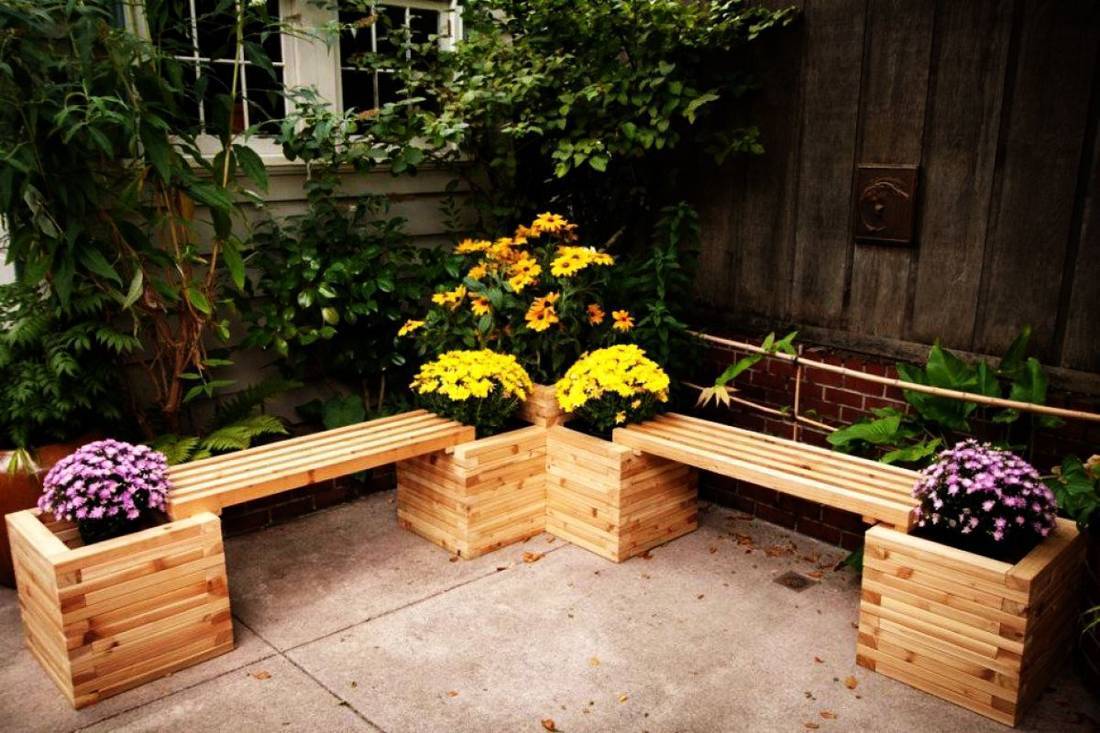 которые станут альтернативными. В маленьком дворе можно спланировать скамейки,