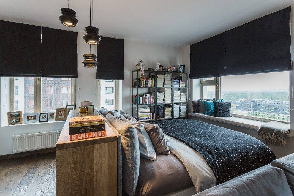 Спальни в таких планировках как «книжка» и «трамвай» узкие и длинные. По площади они вроде бы не такие уж и маленькие, но функциональности это им не прибавляет. Если в спальне не осуществляется перепланировка, то надо стремиться приблизить форму спальни к квадрату с помощью мебели. Это легко сделать, если планировка «книжка». Можно сделать просторную гардеробную комнату или вместительный шкаф-купе. С «трамваем» сложнее, но выход тоже есть. Как можно было увидеть выше, с помощью перепланировки можно совместить в одной комнате гостиную и спальню.