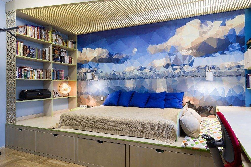 Расстановка мебели играет не менее важную роль. Обычно комнаты делятся на “приватную” и “общественную” зоны. Даже если в квартире проживает больше двух человек, вполне реально создать для каждого свой уголок. Например, кровать на подиуме, которая выступает местом для хранения и сна, дает ощущение приватности и уединенности.