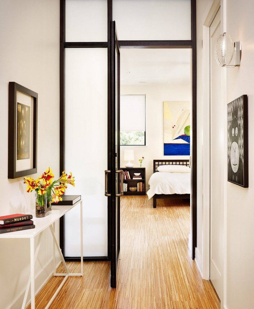 Можно поступить и более радикально, например, установить тонкую деревянную или металлическую перегородку – возможно, ажурную, сквозную. Перегородка из стекла и вовсе может стать идеальным вариантом, потому что она совершенно не крадет пространство.