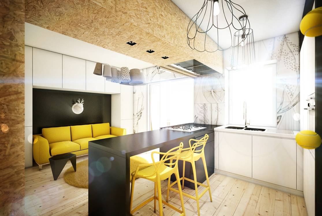Максимально задействовать в дизайне каждый свободный сантиметр, например, уделить внимание подоконнику, его можно использовать как дополнительную рабочую зону. Стараться отдавать предпочтение мобильной или складной мебели
