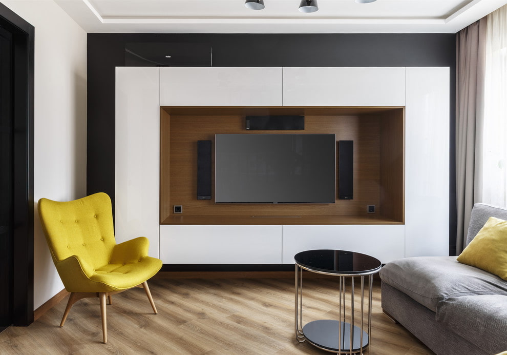 На сегодняшний день телевизор, поставленный на одной из полок корпусной мебели, смотрится неинтересно и обыденно. Дизайнеры предлагают множество оригинальных способов хорошего расположения телевизора с учетом планировки, стиля и удобства.