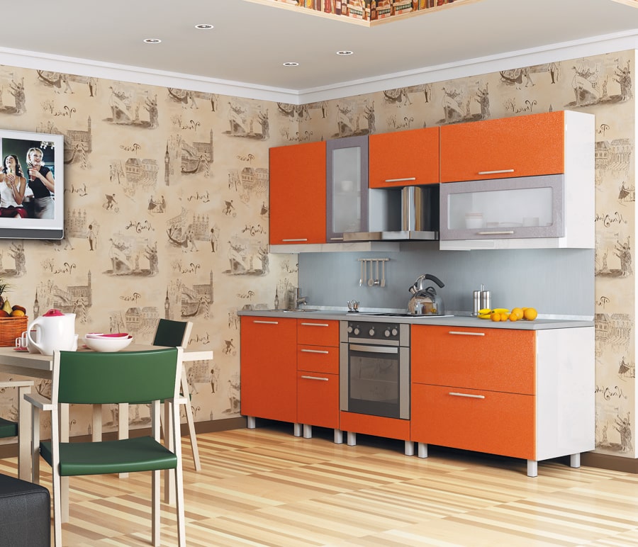 К оранжевой мебели нужно подобрать обои серых или светло-зеленых оттенков. Для красной мебели надо использовать обои бежевой палитры. Пастельные тона будут выгодно оттенять зеленый гарнитур. В этом случае недопустимы лиловые или фиолетовые оттенки.