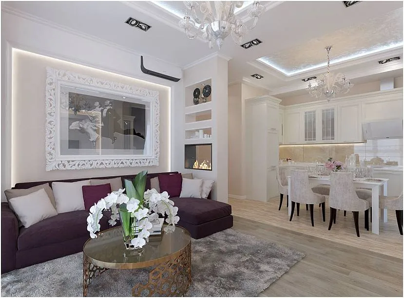Гостиная вторая по важности зона в совмещённой комнате или студии. Площадь в 30 кв. метров позволяет не ограничиваться в дизайне интерьера, подбирая любые стили