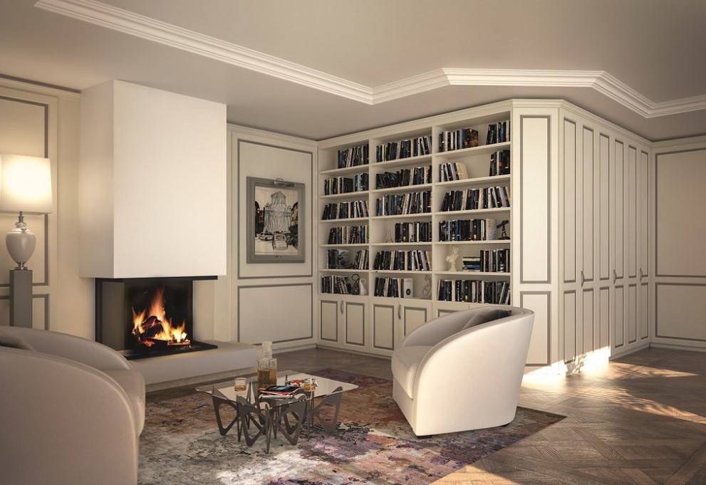 - область возле камина, где можно посидеть в кресле – также можно поставить столик для напитков;