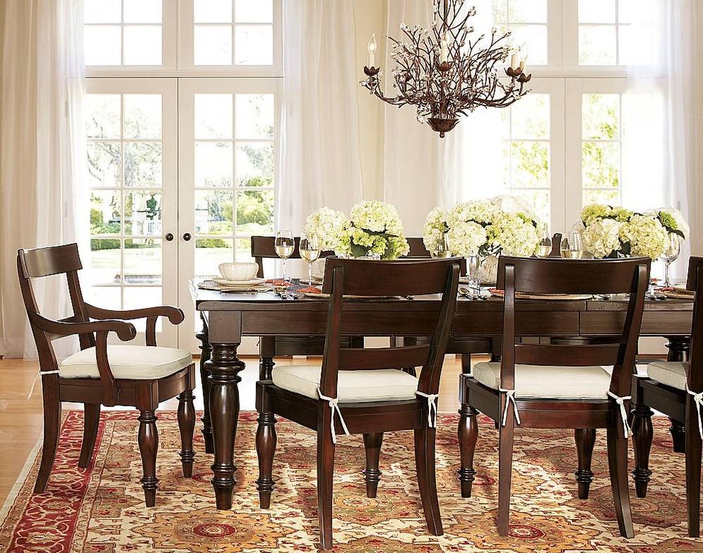 Деревянный стол и комплект стульев в классическом интерьере столовой