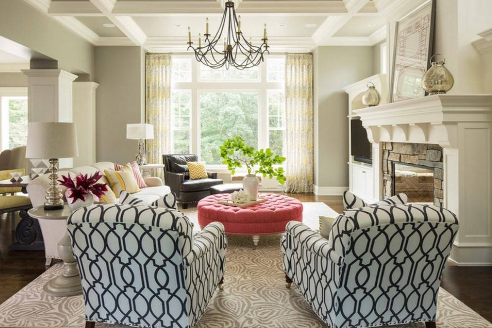 Кресла и пуфы с плавными линиями в классическом стиле идеально дополняют гостиную