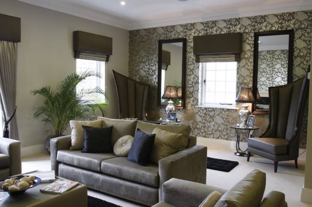 В гостиной смело бери все те настенные покрытия, которые не годятся в кухне или в прихожей. Например, это бумажные или текстильные обои – сочетание натуральной фактуры с витиеватыми рисунками