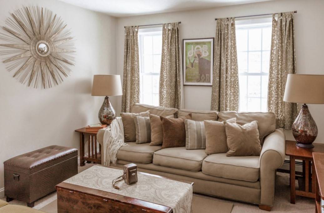 Стены в гостиной можно покрасить в светло-бежевый цвет