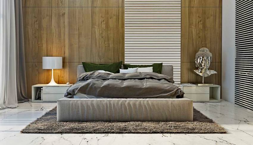 - интересное освещение. Одной из определяющих характеристик базовых спален должно быть акцентное освещение. Приготовьте свой кошелек, потому что в минимальных спальнях есть креативные торшеры или подвески. В ход идет латунь, другие интересные металлы;