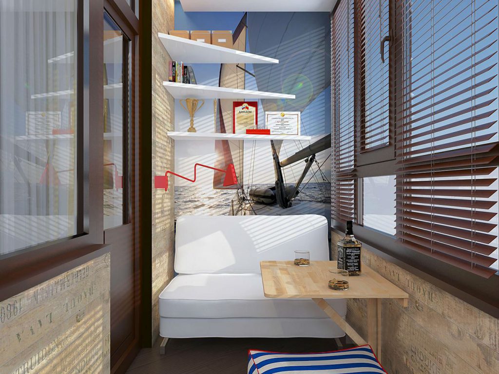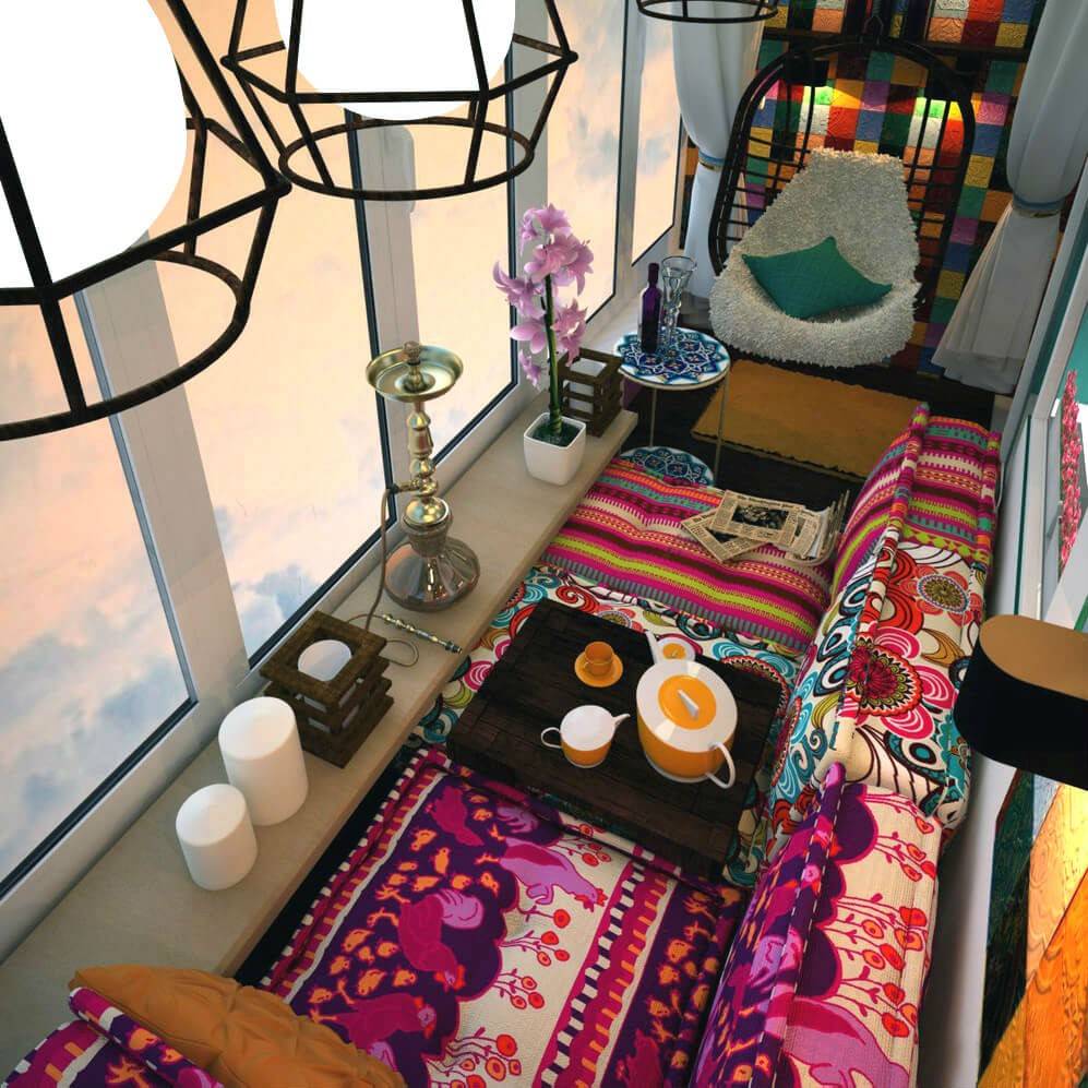 Кто любит пить всей семьей или с друзьями чай, кальяны, вам придется по душе восточный стиль. Нужно использовать в отделке маленького балкона только теплые краски (от бледно-розового, песочного, терракота до бордо или коричневого цвета) на стенах и потолке.