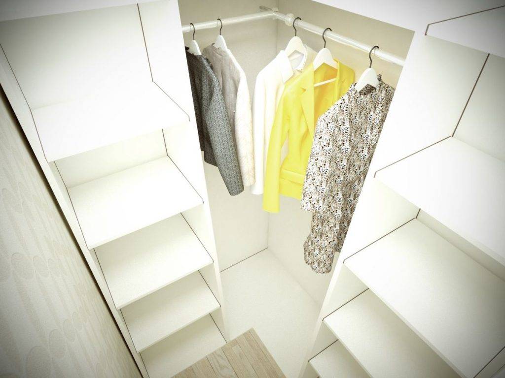 Перед тем, как начать ремонт и создание места для хранения одежды, учтите тот факт, что пространство очень мало, поэтому уделите особое внимание изготовлению проекта