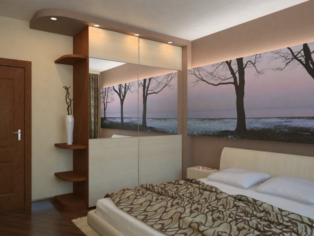 зеркала, благодаря которым можно визуально расширить границы и добавить объема. Лучшим местом для его размещения является дверь шкафа-купе и стена напротив окна;