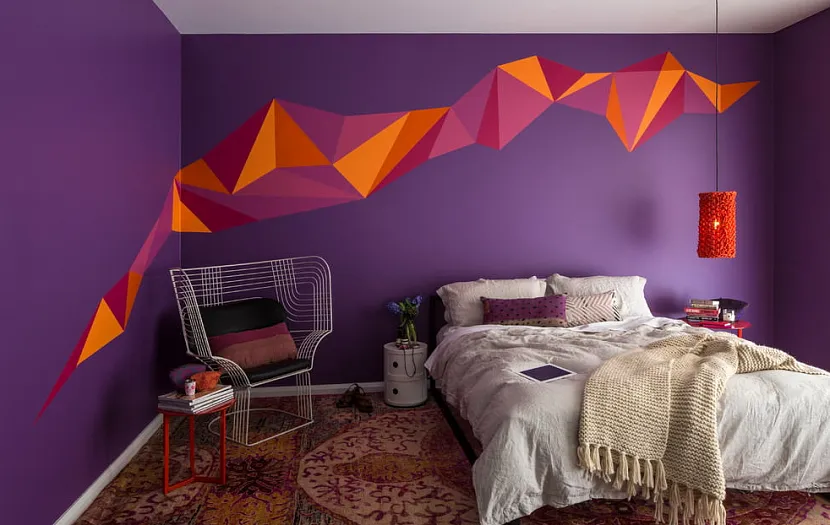 Современная спальня с баклажанными акцентами