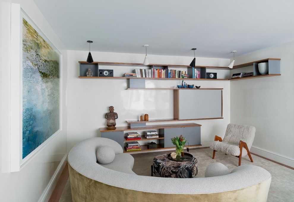 Если в помещении есть выступы, ниши, скошенные стены, это влияет на гармоничную расстановку мебели, четко определяя для каждого предмета меблировки конкретно отведенное место. Реже в таких комнатах есть эркерные зоны, выполняются подиумы, либо комната имеет сообщение с лоджией или балконом.