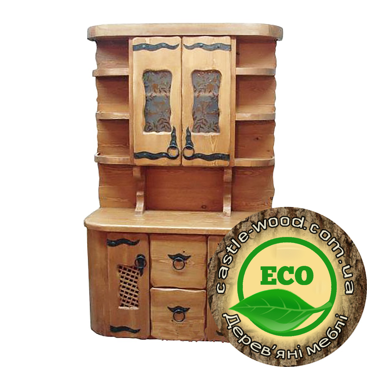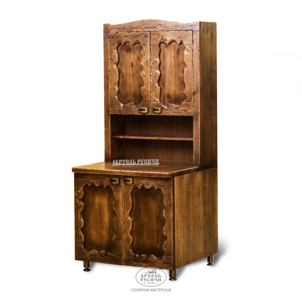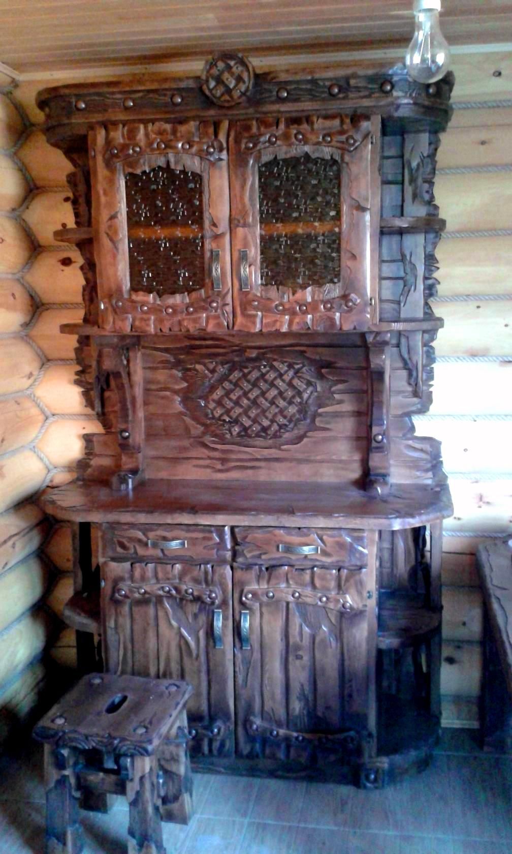Для кухни стоит изготовить обеденный стол с объёмной столешницей. Его главным украшением могут стать фигурные ножки, сочетающиеся с элементами типажных стульев. Уместен шкаф, дизайн которого должен сочетаться с выбранным стилистическим направлением.