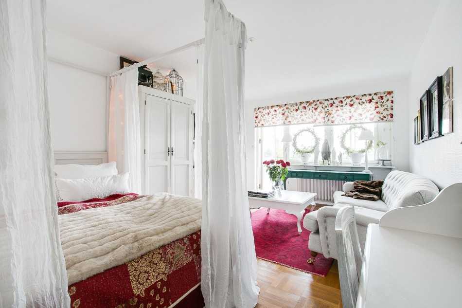 Можно так же использовать шторы, выдвижные стены и ширмы для создания полноценной спальни рядом с гостиной.