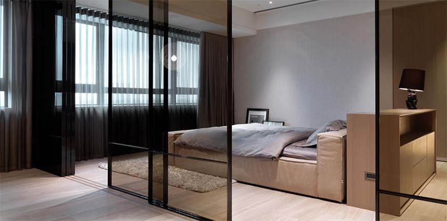 Спальную территорию желательно делать незаметной при помощи разных хитростей или же вообще выделить для нее отдельное пространство подальше от входной двери.