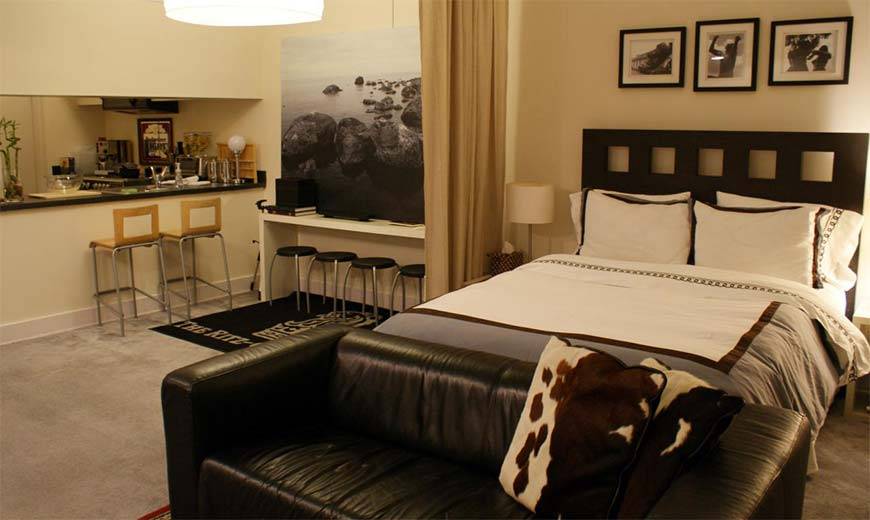 Эту обязательную комнату в однокомнатной квартире можно воссоздать двумя способами: