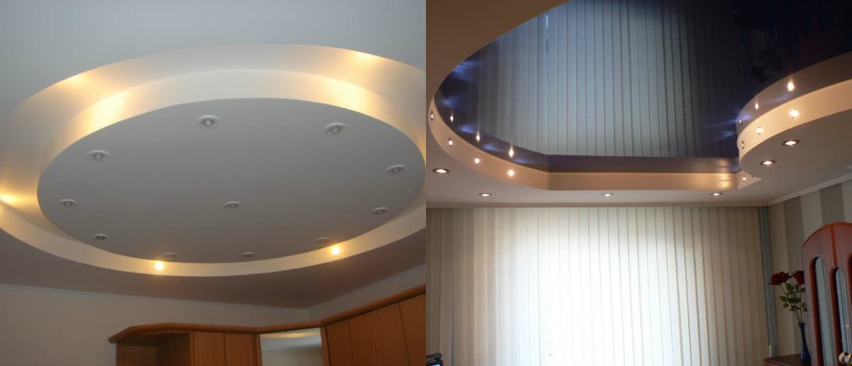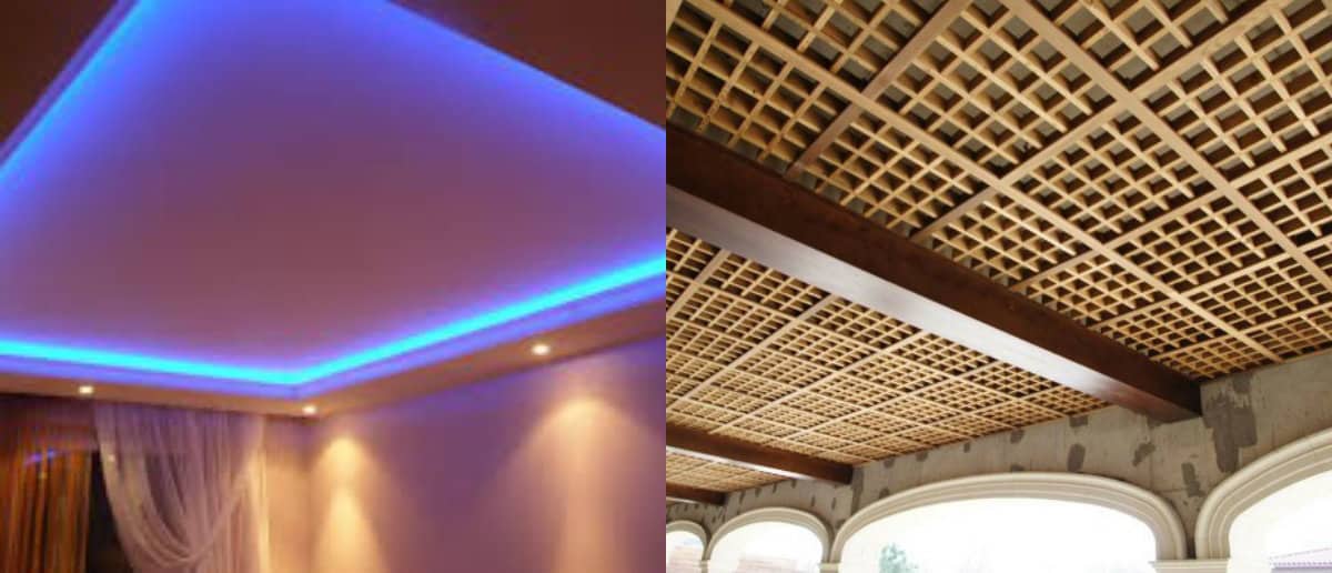 Сплошной. Такого рода поверхности, как правило, состоят из монолитных гипсокартонных листов. Они легко поддаются любому декорированию. В них можно предусмотреть любые виды освещения. Сейчас популярны потолки, выполненные в несколько уровней из различного материала.