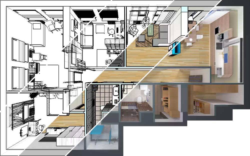 - Составление предварительного предложения по перепланировке, если такие работы будут проведены. Тут следует обязательно учесть возможное зонирование помещения функционально, габариты и размеры мебели, размещение мультимедийной и бытовой техники так, чтобы это было по максимуму приближено к образу жизни владельца квартиры (заказчика).